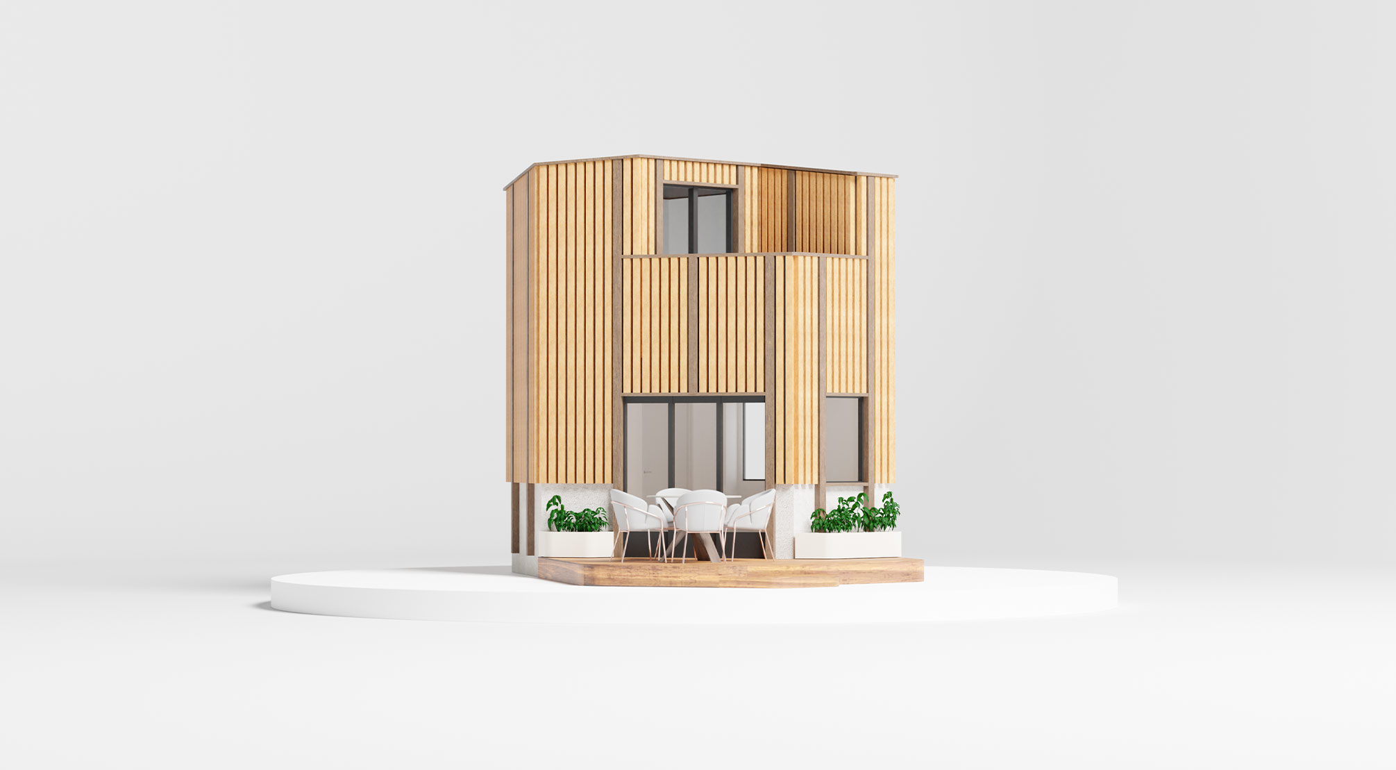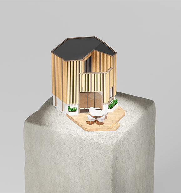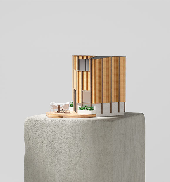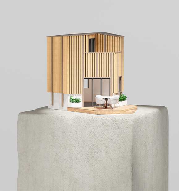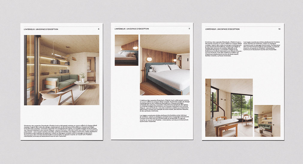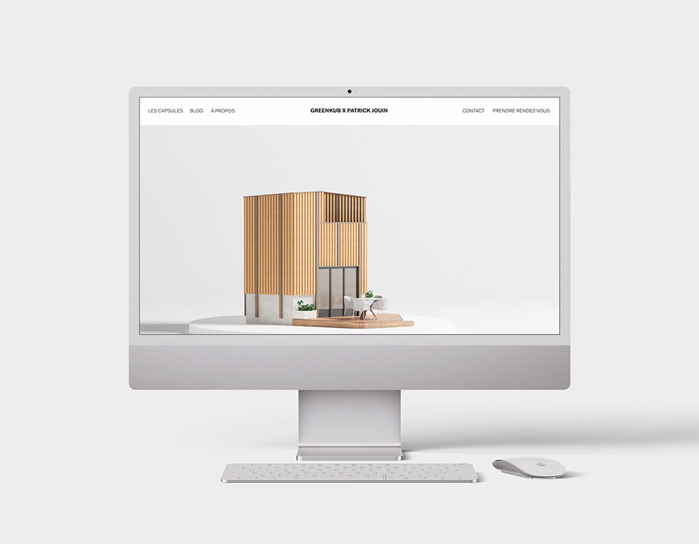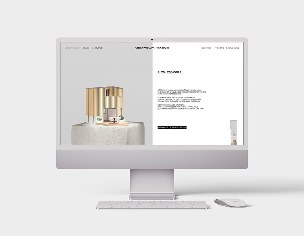 Les visuels 3D ont été conçus comme une véritable mise en scène artistique de la capsule GreenKub x Patrick Jouin. Chaque image révèle l’architecture : volumes maîtrisés, matières sublimées, jeux de lumière précis. À travers des vues immersives et des zooms matière, la capsule s’expose comme dans une galerie d’art contemporaine. Les animations au scroll et la vue 360° permettent une lecture sensible du projet, presque tactile.