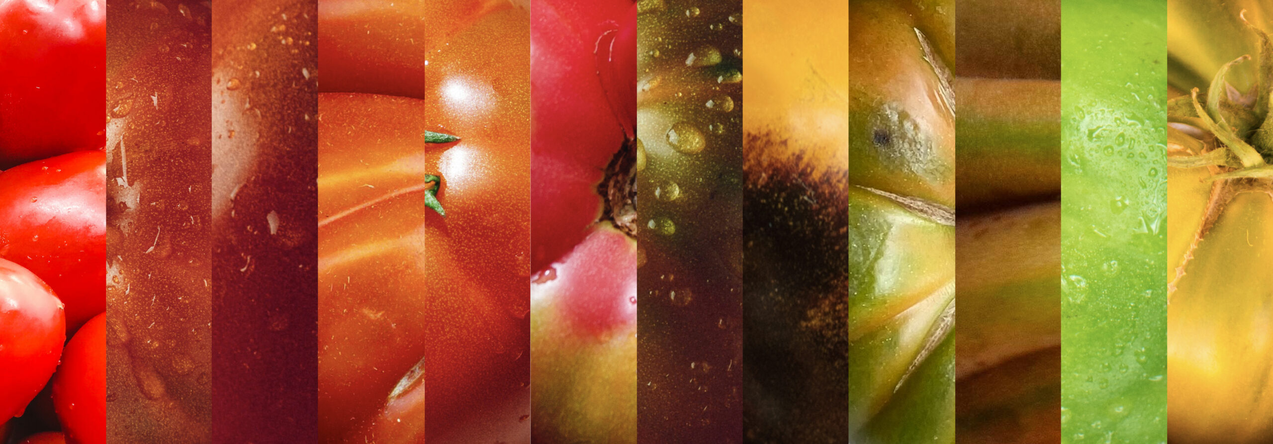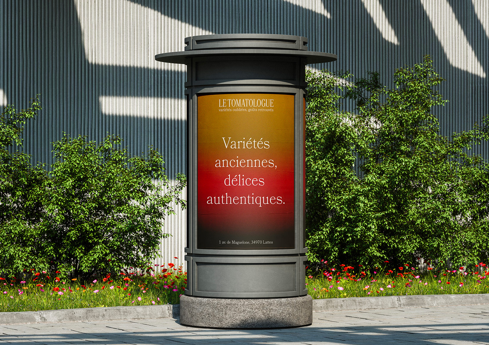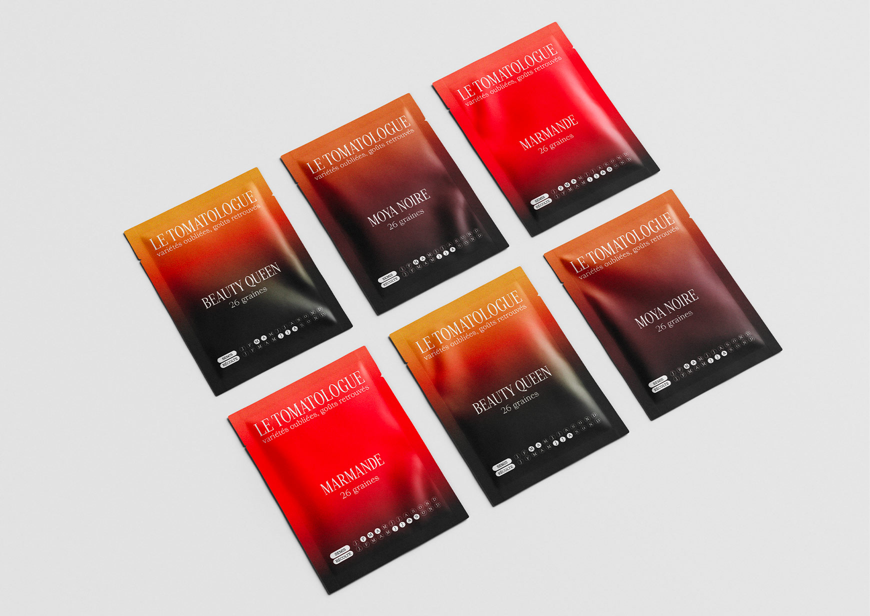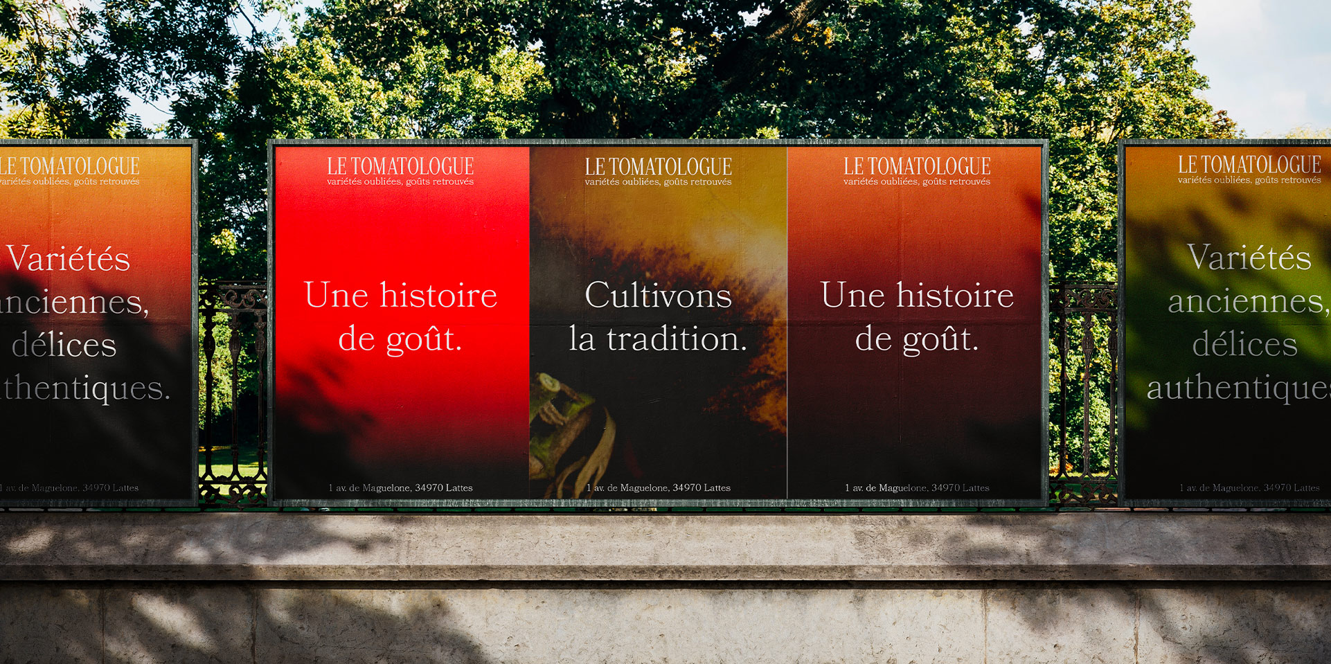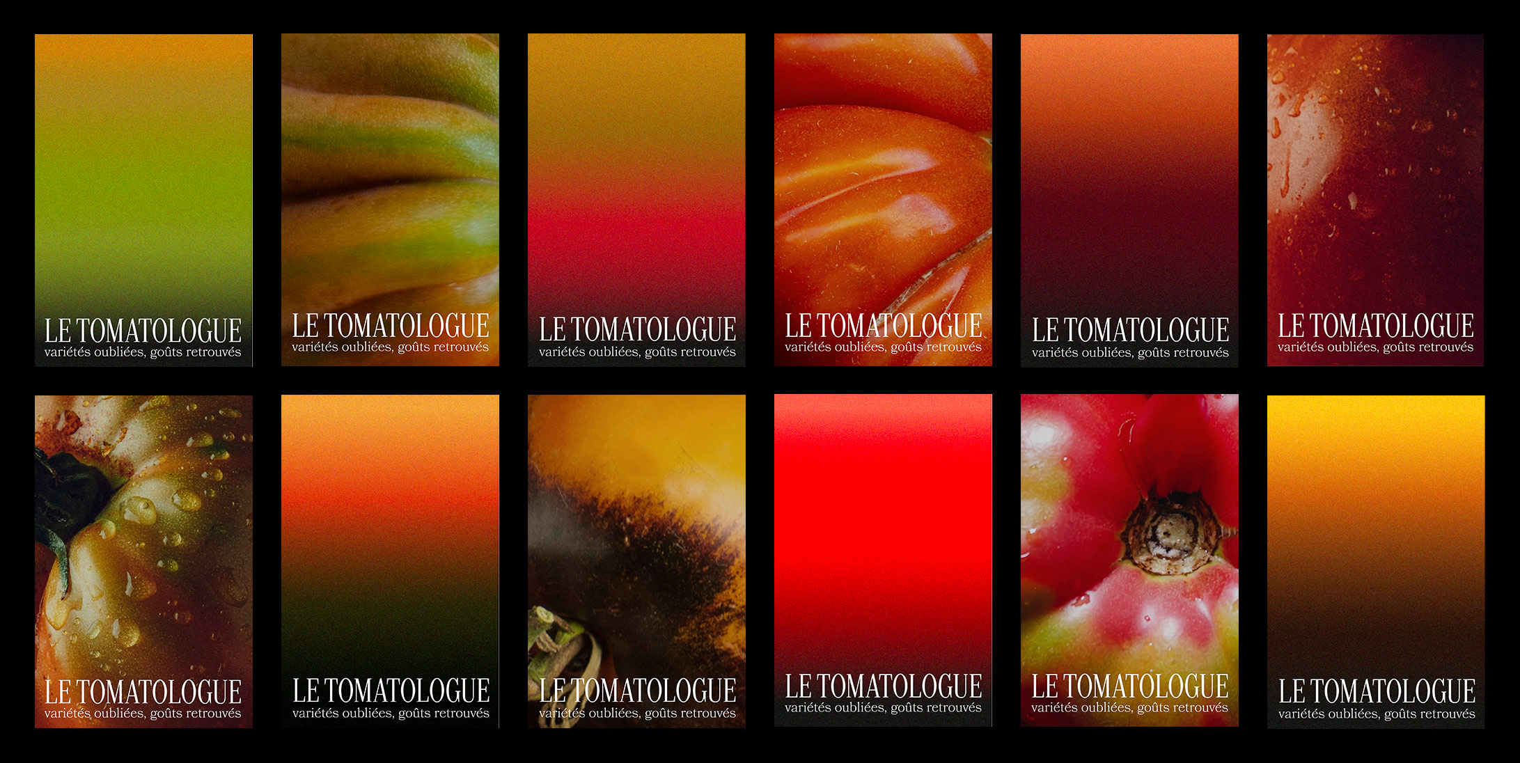 La modernité s’invite au cœur des traditions. Des dégradés éclatants symbolisent la diversité des couleurs et des variétés de tomates, offrant une palette infinie de saveurs. Chaque nuance de couleur illustre une variété unique, célébrant à la fois l’authenticité et l’innovation. Des photos zoomées révèlent les textures, les formes et les imperfections brutes des tomates. Une esthétique qui met en avant la richesse de l’offre. L’idée ? Éveiller l’appétit et donner envie de redécouvrir des saveurs oubliées.