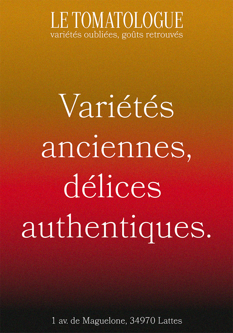 Éric Pédébas, alias le Tomatologue, incarne l’expertise et la passion pour la tomate. Producteur et vendeur spécialisé, il propose une sélection unique de graines et de plants de tomates rares et atypiques, cultivés avec soin pour raviver les saveurs d’antan. Des produits bruts, riches de saveurs et de textures, qui allient passé et présent. Moderniser les variétés d’antan, c’est les rendre accessibles au goût du jour tout en conservant leur authenticité. Une offre qui met en avant la transparence et la simplicité, dans un esprit moderne et vivant.